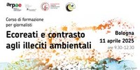 L’Ordine dei giornalisti, la Fondazione giornalisti dell’Emilia-Romagna e Arpae organizzano un corso di formazione per giornalisti dedicato a "Ecoreati e contrasto agli illeciti ambientali". Si terrà l’11 aprile 2025 online e nella sede di Arpae a Bologna (via Po 5), dalle ore 9,30 alle 12,30.