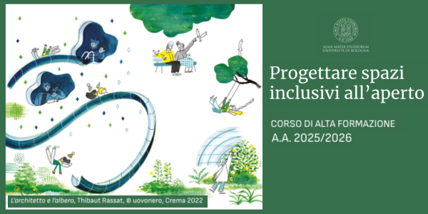 L'Università di Bologna propone anche per l’anno accademico 2025-2026 “Progettare spazi inclusivi all’aperto” il corso di alta formazione per formare profili professionali in grado di co-progettare spazi verdi con finalità educative e/o aule didattiche all’aperto in ambiti formali e non formali e in collaborazione con altri professionisti.