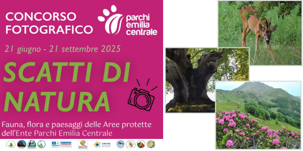 L'Ente Parchi Emilia Centrale ha lanciato "Scatti di Natura", prima edizione del concorso fotografico dedicato alla valorizzazione delle Aree protette del territorio, attraverso immagini che ne raccontino la fauna, flora e i paesaggi più rappresentativi. Il concorso si svolgerà fino al 21 settembre 2025 ed è aperto a tutti i cittadini maggiorenni.