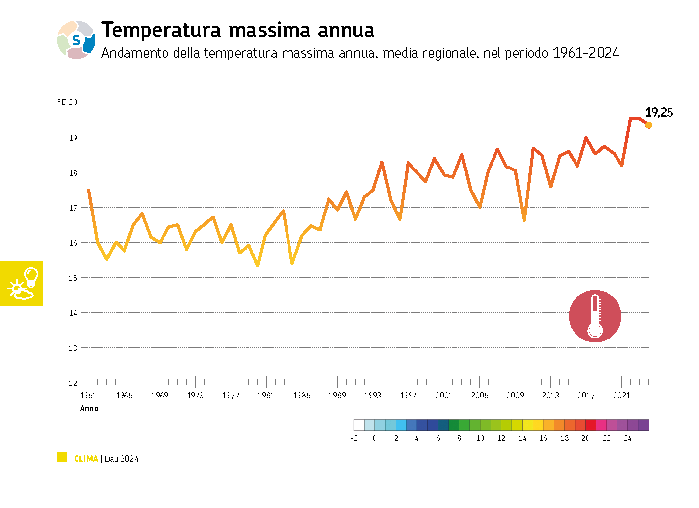 In Emilia-Romagna, negli ultimi 60 anni, la media annuale regionale della temperatura massima ha registrato un costante incremento, più marcato nell’ultimo trentennio, con estati sempre più calde.